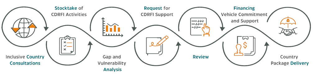 Country consultations, a stocktaking of CDRFI activities, and a Gap and Vulnerability Analysis are a prerequisite and central component of a CDRFI Request. The Request for CDRFI Support is submitted to the Global Shield via the Global Shield Secretariat.